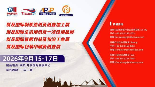 中国纸包装设备在埃及市场的成功,是技术实力、政策适配、成本优势与文化共生共同作用的结果。通过成本优化、技术赋能、市场辐射与生态共生,中国企业正以埃及为支点,撬动中东非市场的长期价值,为全球包装产业的绿色转型与文化共生注入东方智慧。而即将到来的行业盛会,更为这一进程注入强劲动力——2026年9月15日至17日,第18届埃及Print 2 Pack国际包装印刷及纸业展览会将在埃及开罗国际会展中心举办。